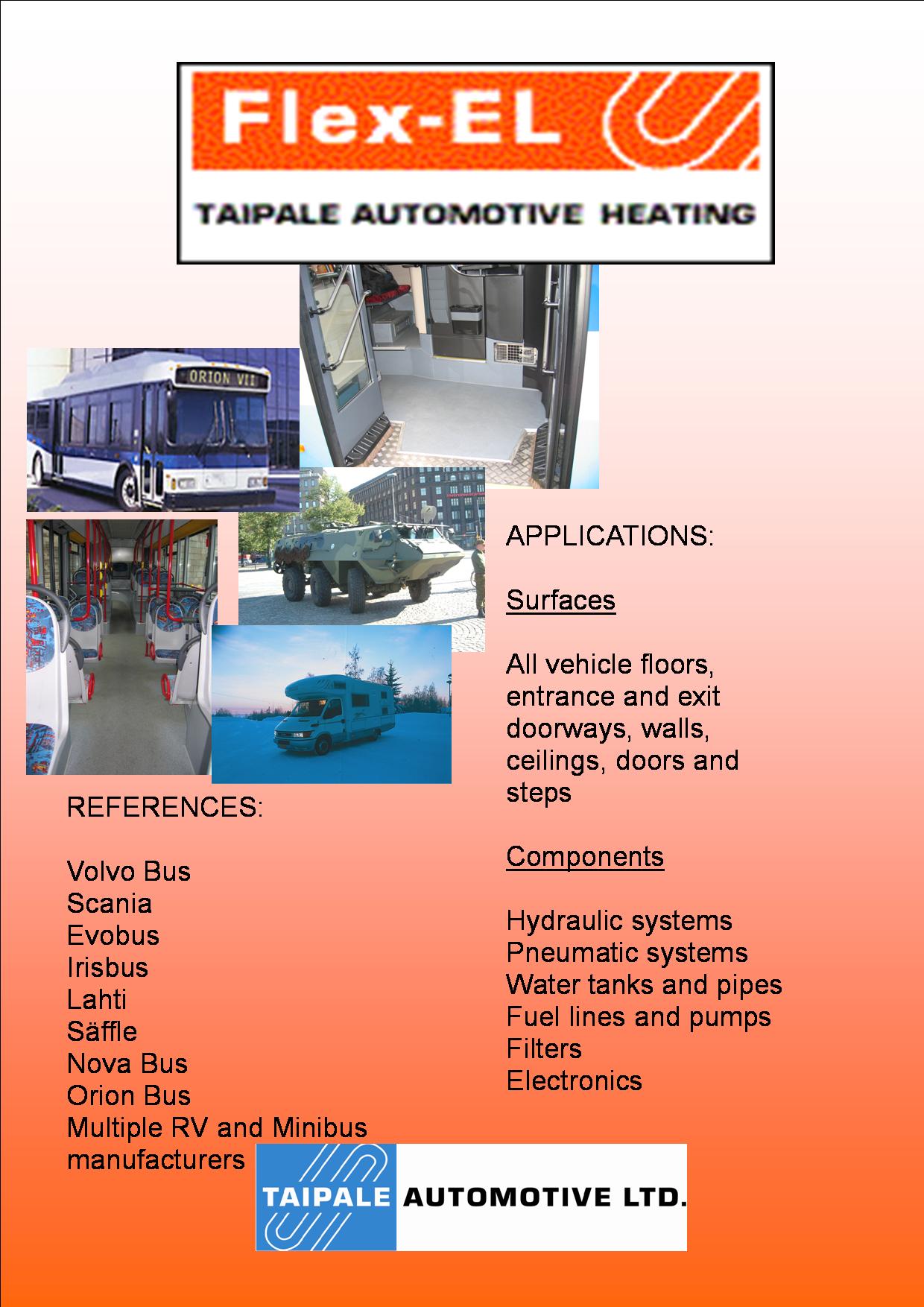 The Taipale main products is Flex-EL Automotive Heating. Products